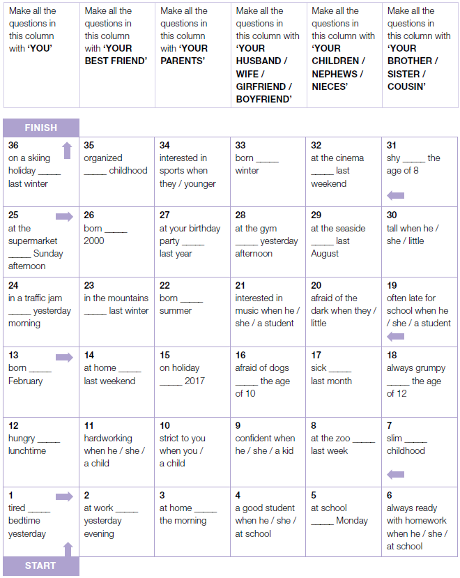 Mary cleaned* the kitchen an hour ago. We checked* this exercise at the previous class. In childhood, I wanted* to become a pilot. We met** Mr. Jones last December. Somebody stole** Jack’s cell phone yesterday. Fiona went** home after the class. I didn’t work when I was 18. We didn’t have a pet in childhood. Sam didn’t do sports a year ago. You didn’t go to the conference in Birmingham last week. Did Mike go to the movies with you yesterday? Did you do this task last time? Did you understand the new grammar topic at the previous class? What time did you wake up this morning? How many classes did Sam visit last month? Who did your niece meet in LA? ***Who knew about this yesterday? ***Who stole Jack’s cell phone? ***Who wanted to become a pilot in childhood? |